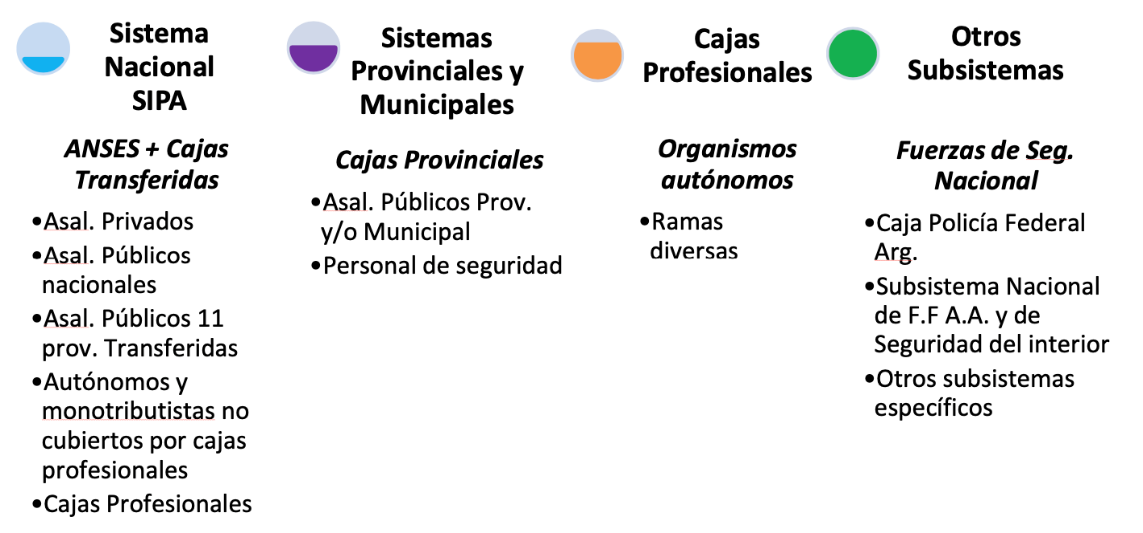 Actualmente, en Argentina, hay 13 cajas provinciales con regímenes previsionales propios que representan casi la cobertura de casi el 50% del total de empleados públicos (docentes, fuerzas, etc.) Estas provincias son: Buenos Aires, Córdoba, Chaco, Chubut, Corrientes, Entre Ríos, Formosa, La Pampa, Misiones, Neuquén, Santa Cruz, Santa Fe y Tierra del Fuego