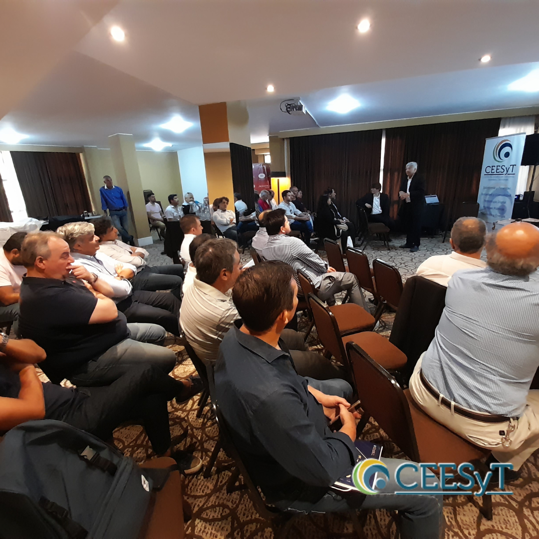 Antes de comenzar con la exposición, se mostró un video-mensaje del presidente del CEESYT Diego Dequino, que no pudo asistir.